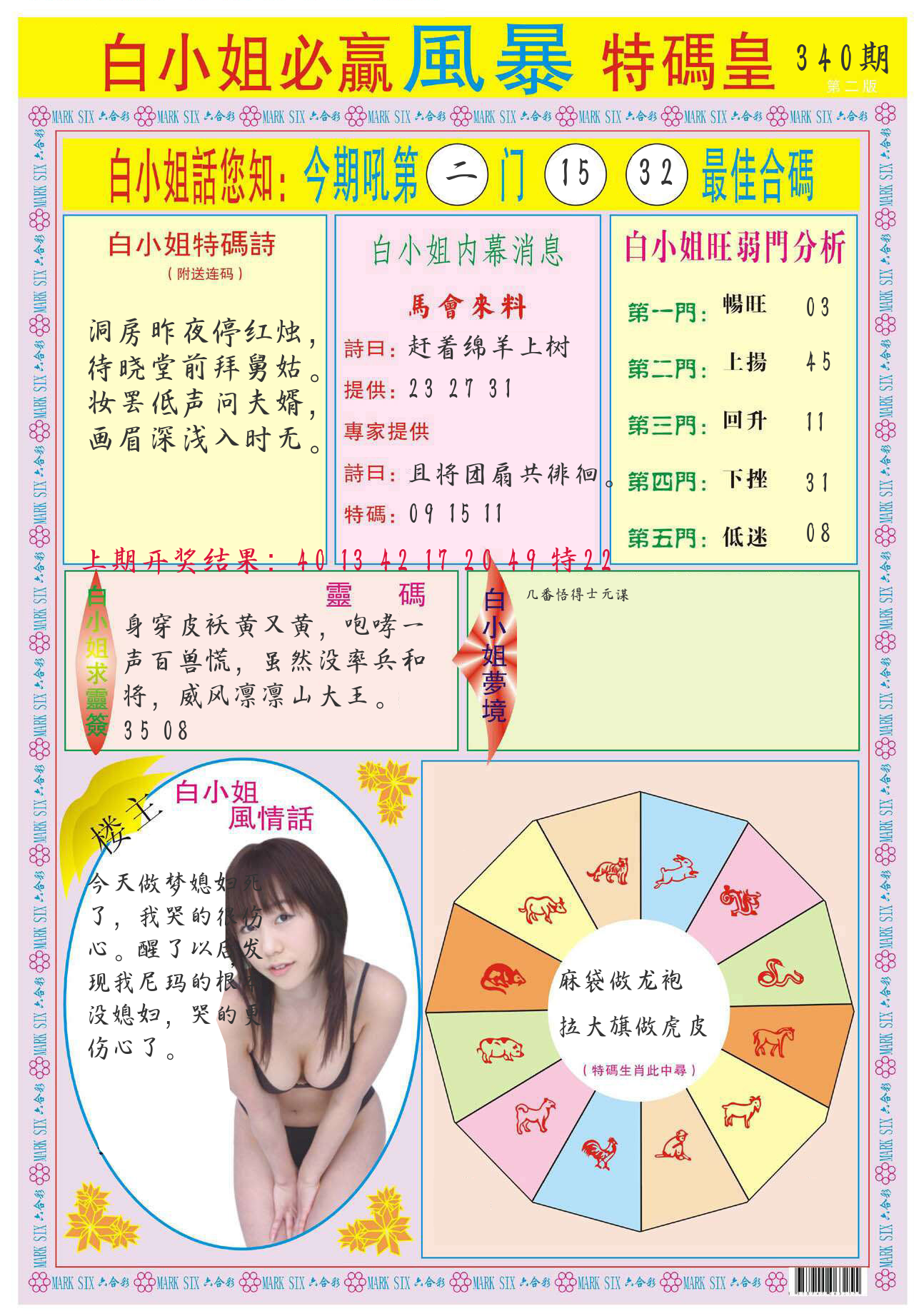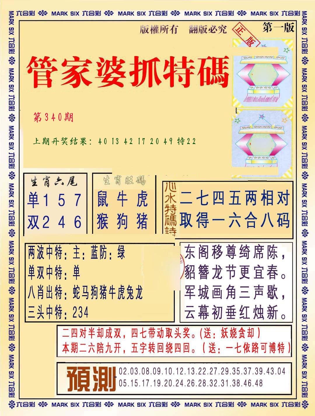 | 340期:单双四肖八码 开:????? | |
