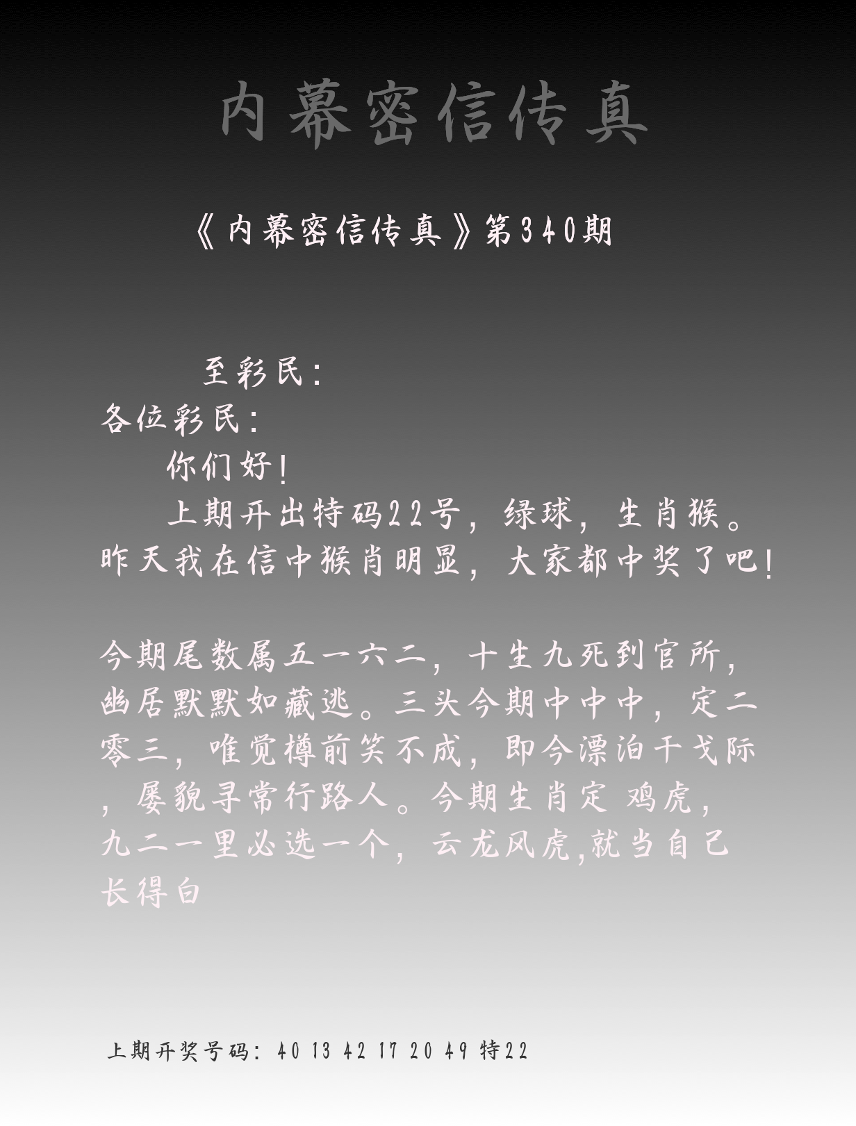 339期 40-13-42-17-20-49 T22 虎√