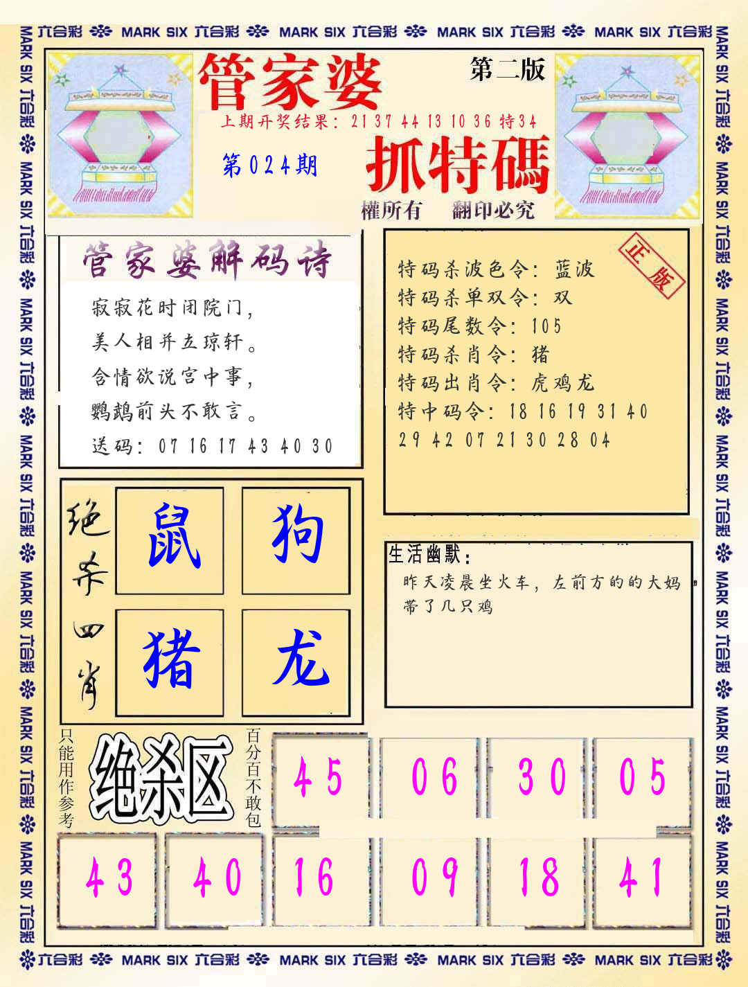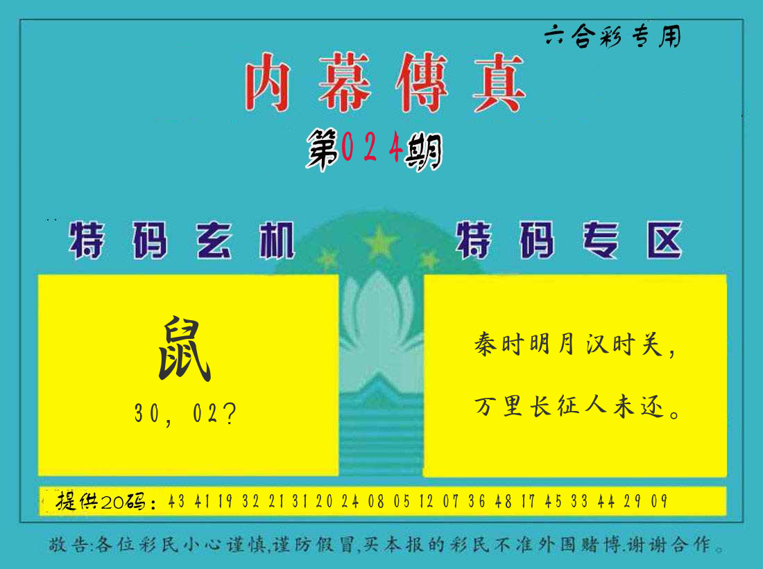 | 024期:新泰国六合彩四尾八码 开????? | |
